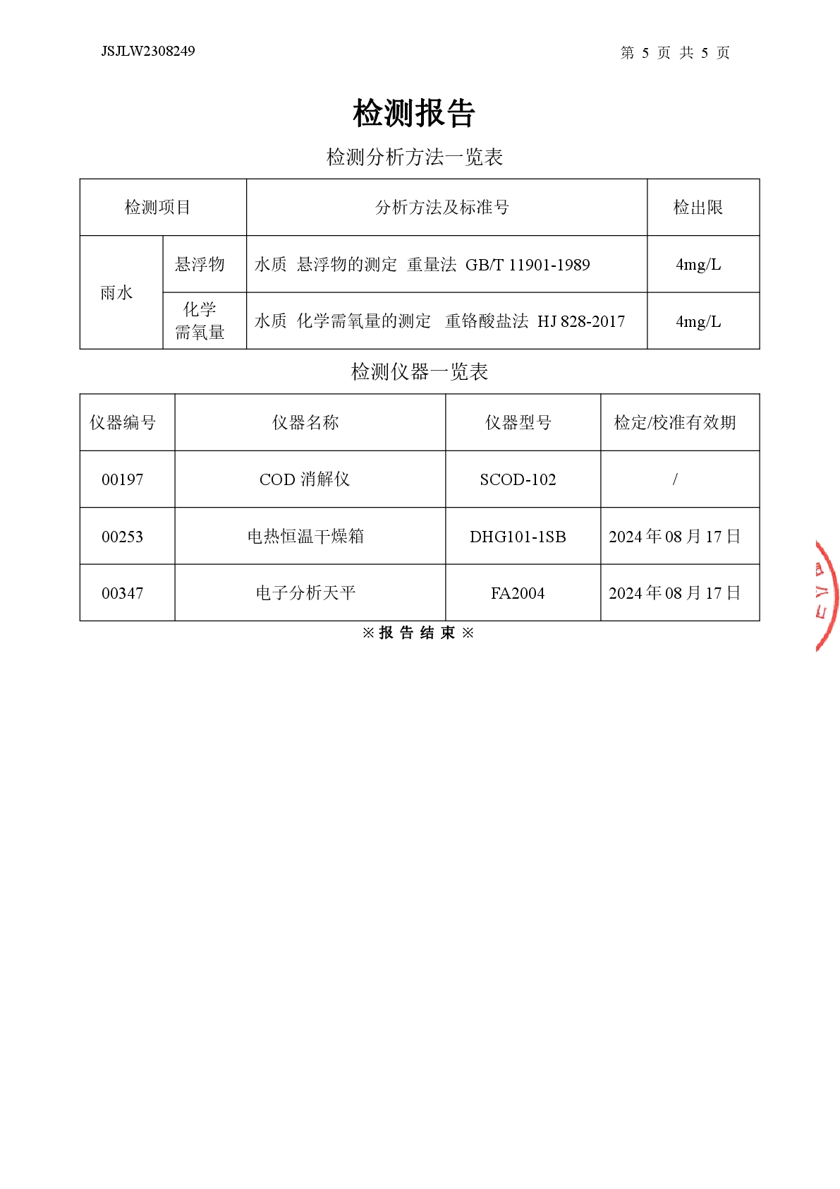 雨水:化學(xué)需氧量、懸浮物檢測(cè)